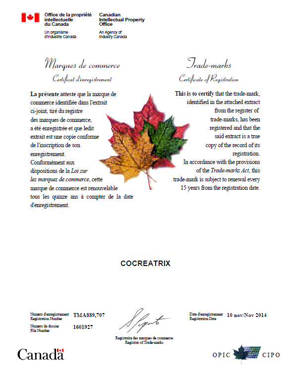 CO-CREATRIX is a registered trademark within Canada and United States.